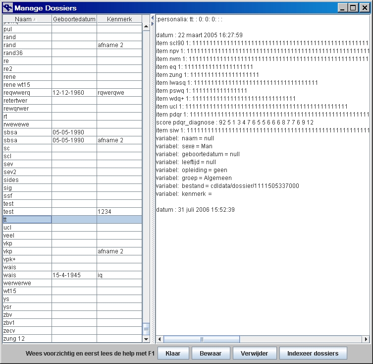 dan kan het zijn dat de inhoud van het indexbestand, waarmee alle dossiers gemaakt en